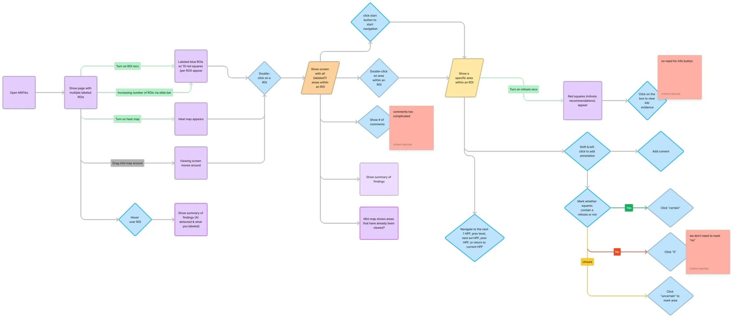 I was given the task of redesigning MitFlex to enable collaboration and better assist pathologists overall. More specifically, I was told to maintain a similar layout and information provided by the current system, but add new features that allow a user to comment and leave uncertainty markings for the next user view. For winter quarter, I was assigned to work on the interface of the first user’s point of view.
